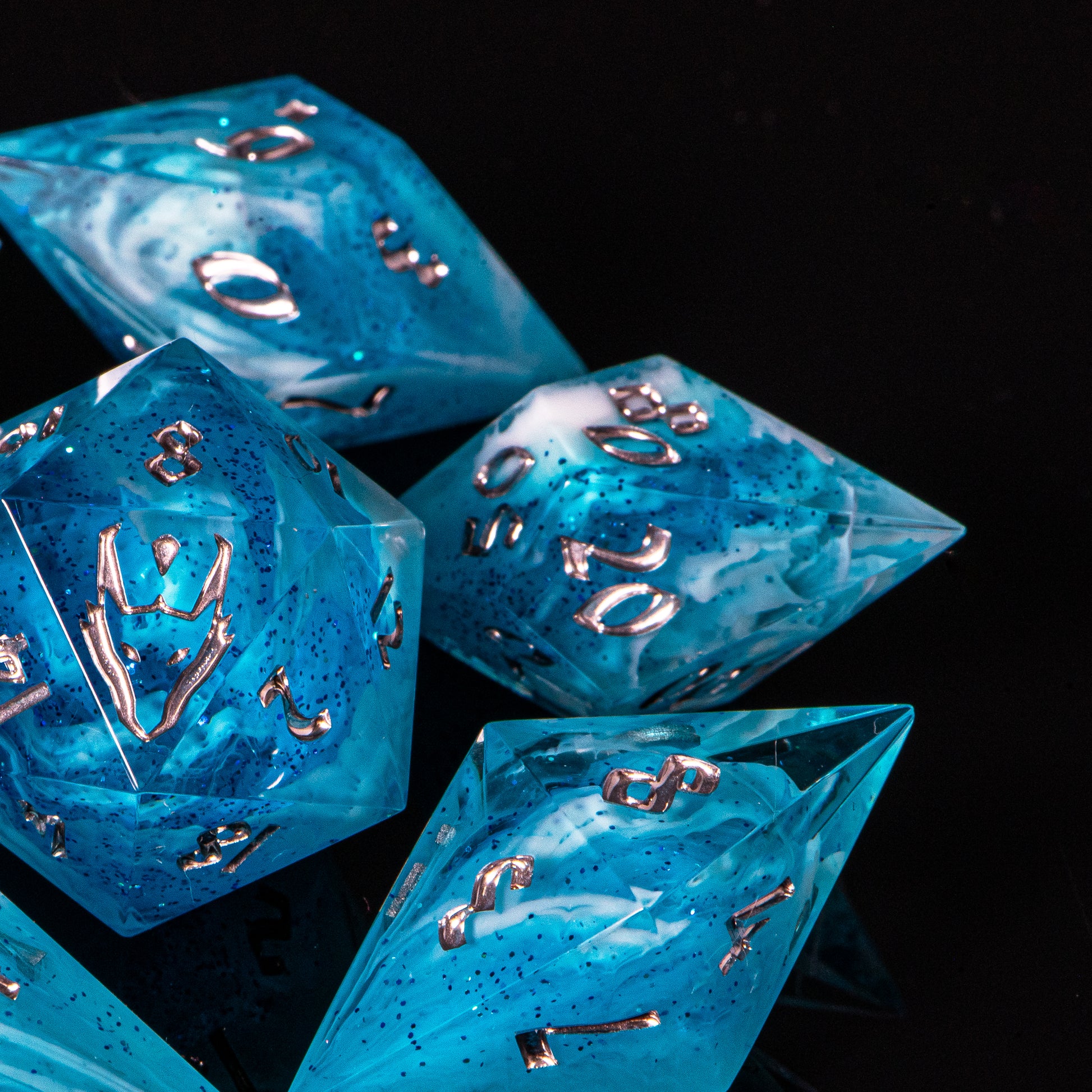 - Handcrafted Physical Dice (50%): A tangible 7-piece resin dice set handcrafted by the artist and selected from the Signature Series. This is the only physical item included in the shipment.