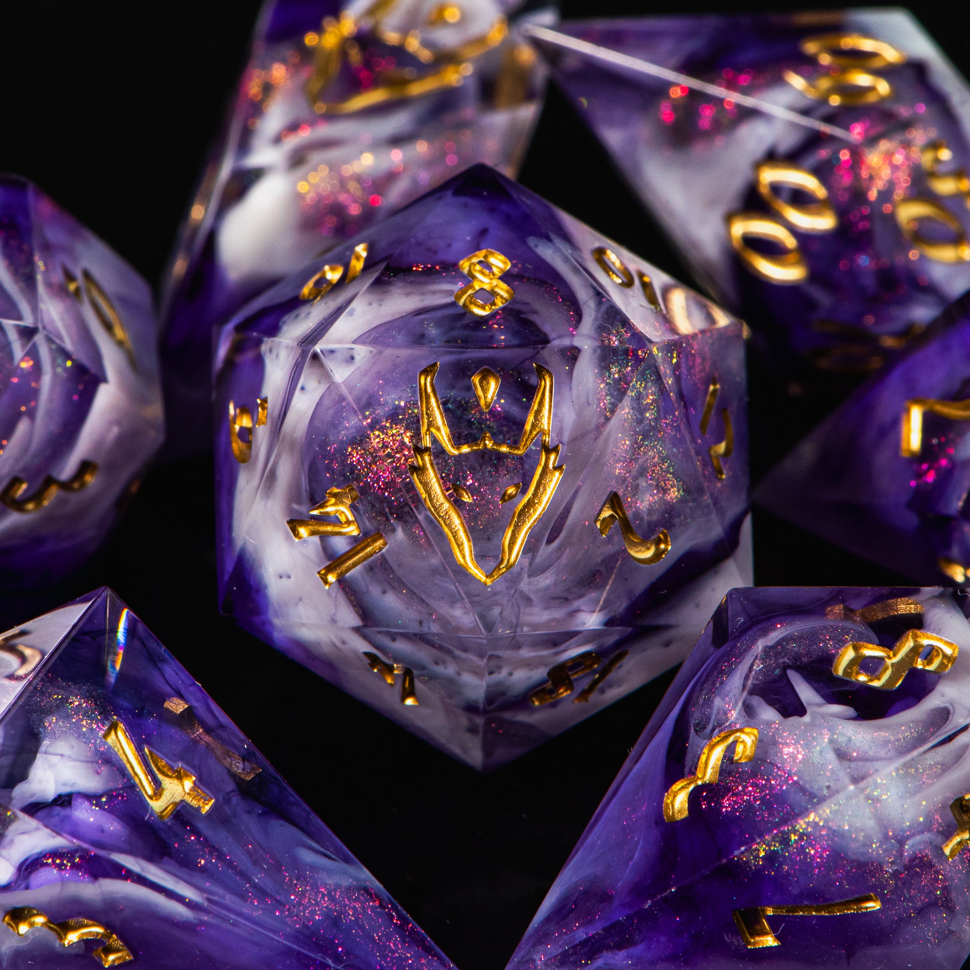 - Handcrafted Physical Dice (50%): A tangible 7-piece resin dice set handcrafted by the artist and selected from the Signature Series. This is the only physical item included in the shipment.