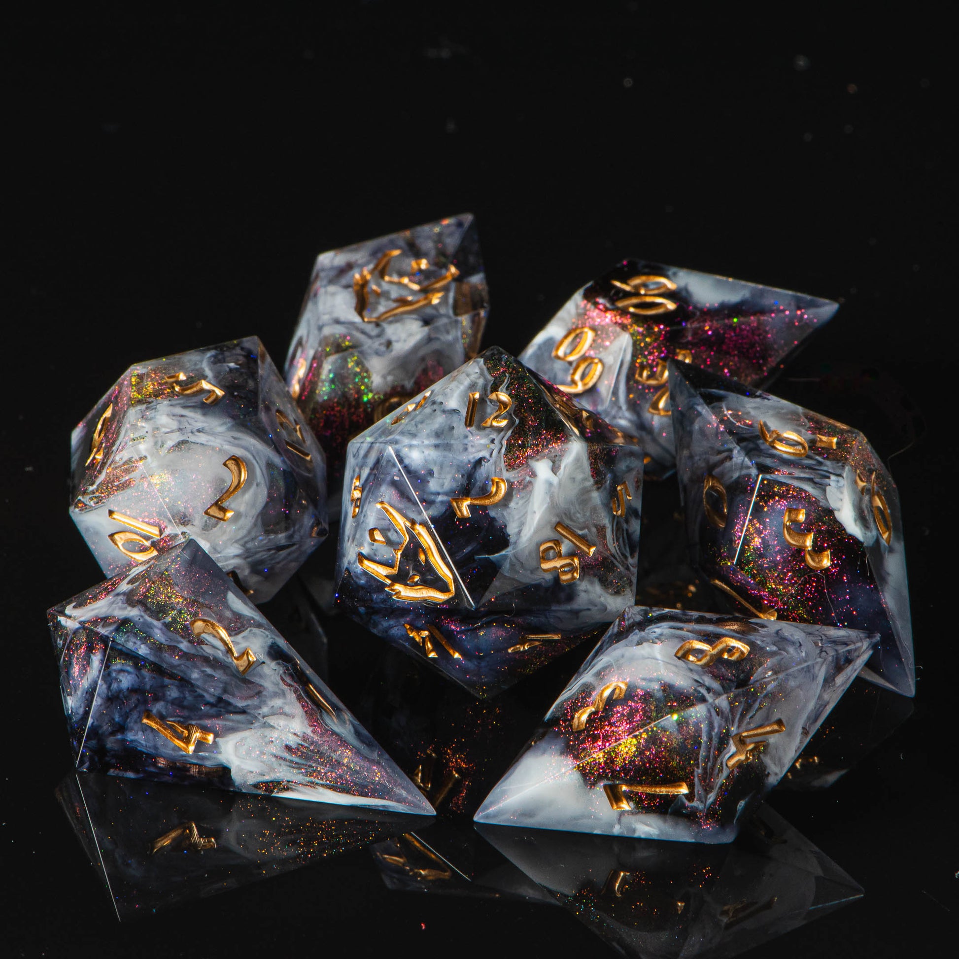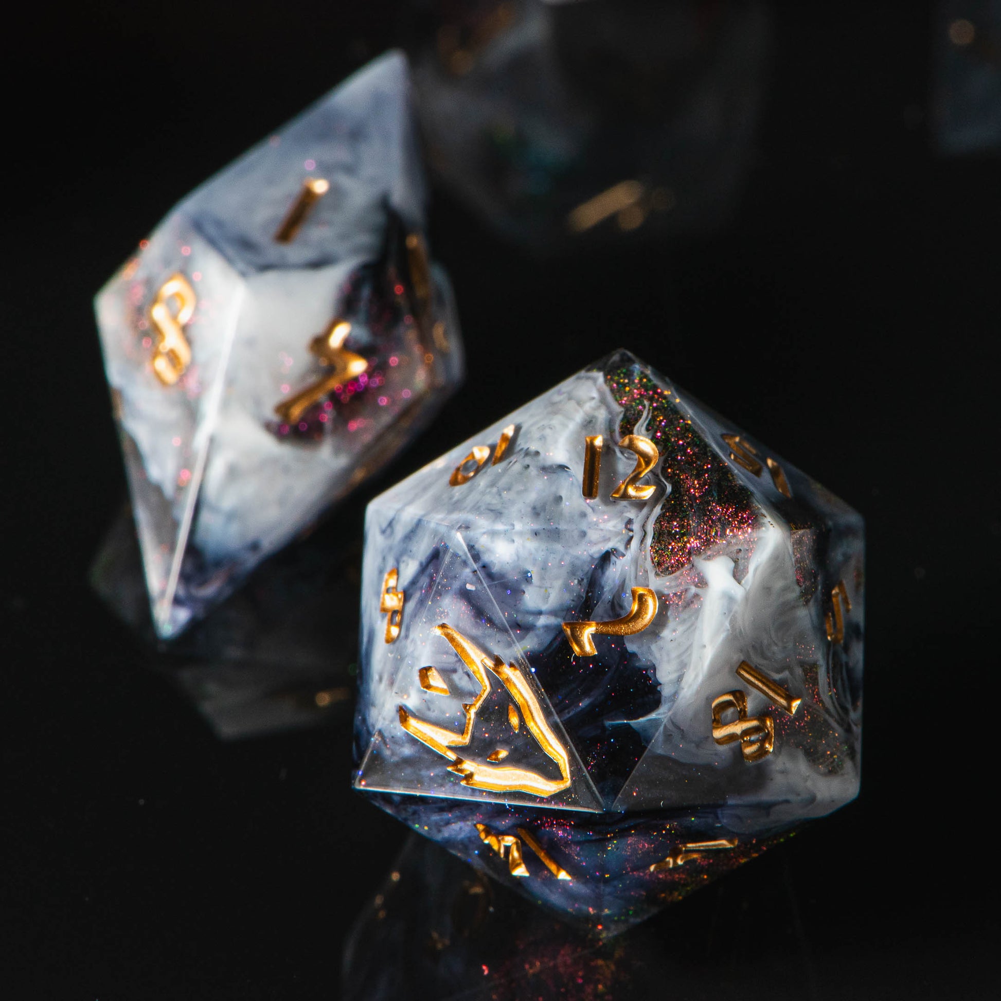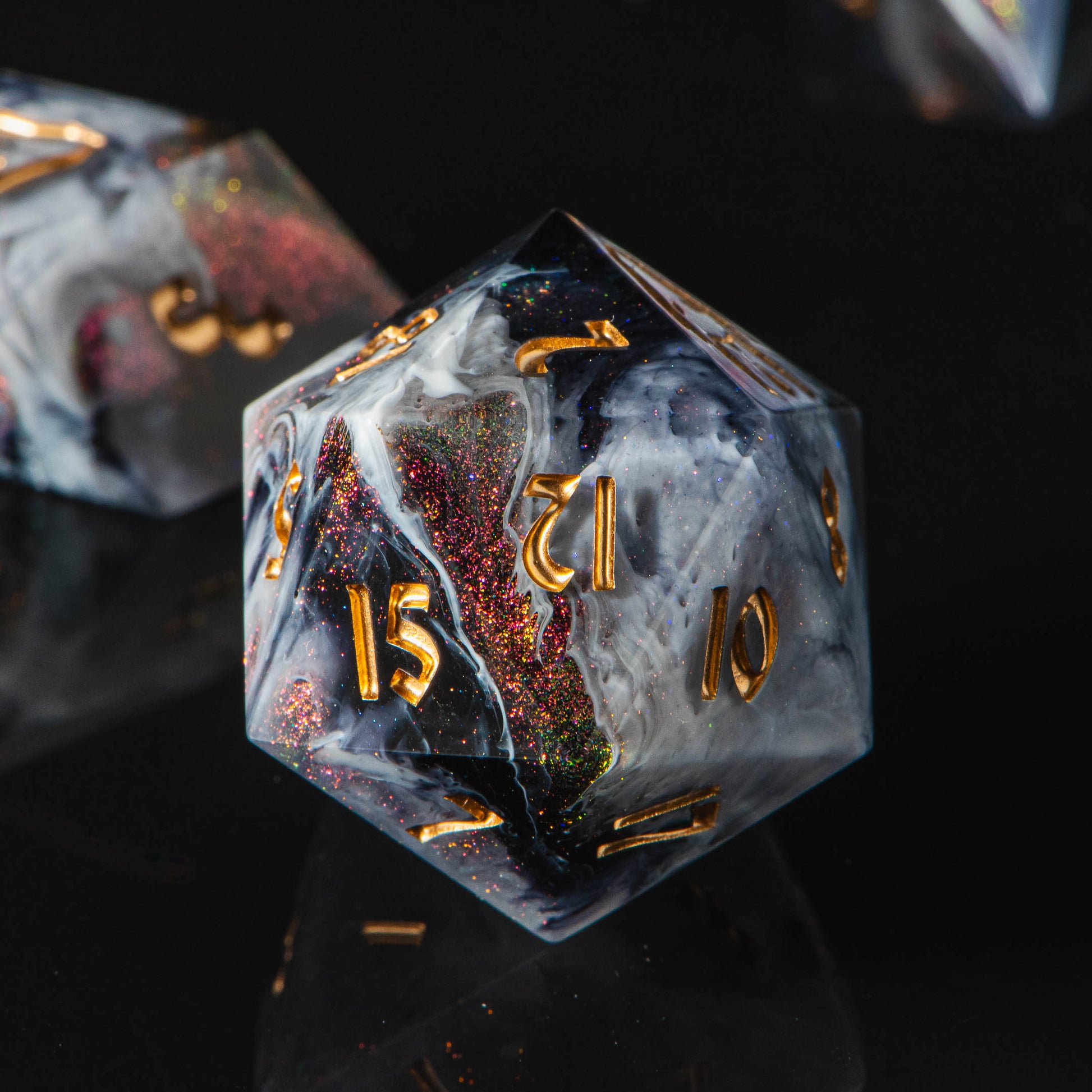 All Draco Solis dice are handmade, and we put our hearts into crafting them to be as perfect as possible. However due to the handmade nature of the dice there may be some sort of imperfections or cosmetic flaws. Any more noticeable flaws are listed below, and the product is priced accordingly.