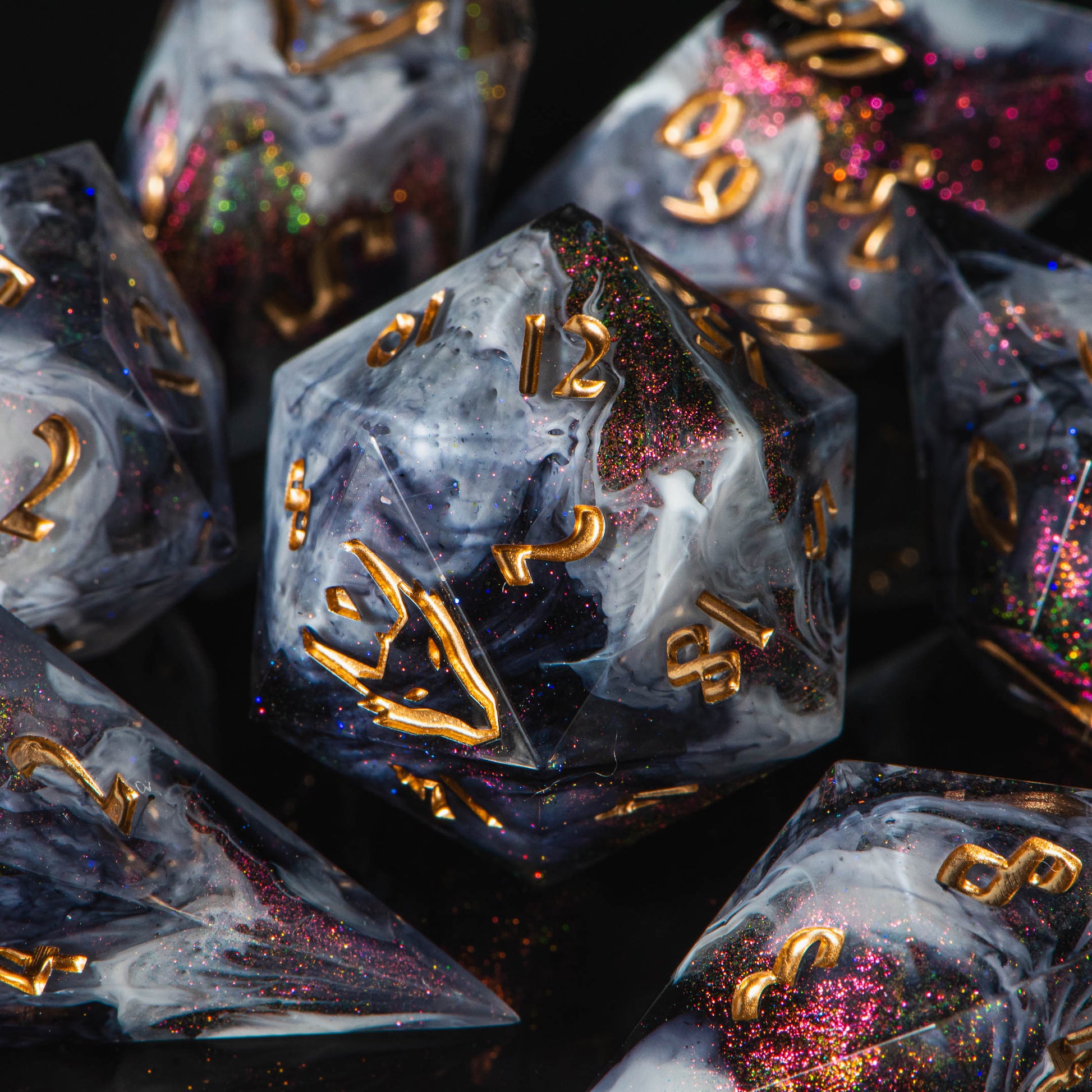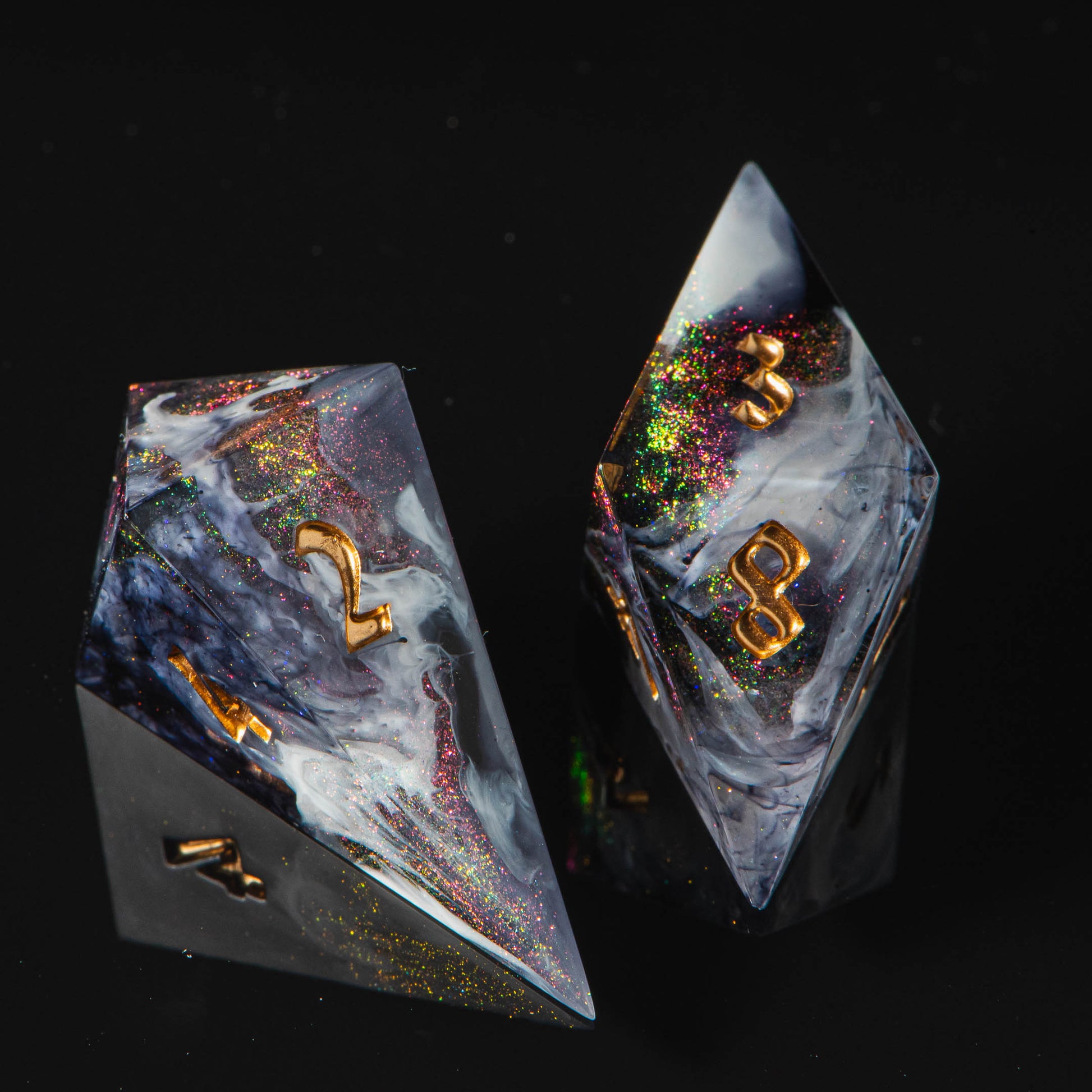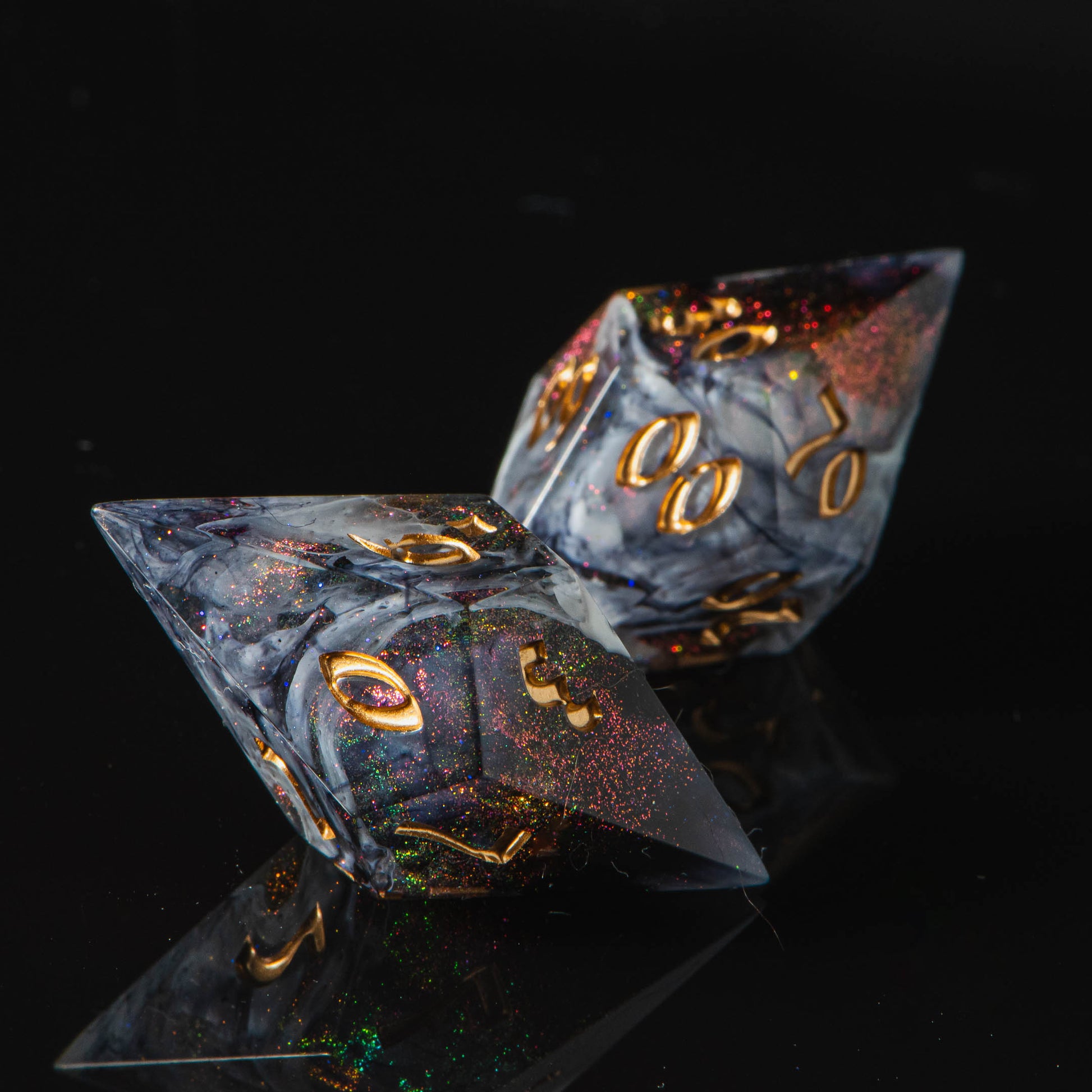 All Draco Solis dice are handmade, and we put our hearts into crafting them to be as perfect as possible. However due to the handmade nature of the dice there may be some sort of imperfections or cosmetic flaws. Any more noticeable flaws are listed below, and the product is priced accordingly.